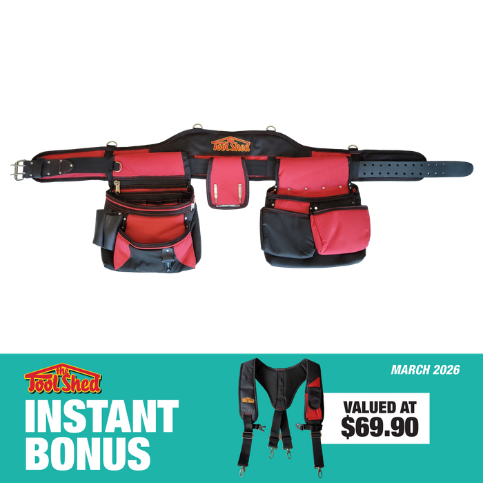 The new range of ToolShed Nylon Builders Aprons meet the high demand for the modern builder and construction worker. These aprons are designed to be worn backwards compared to traditional aprons so the pouches sit on the side of your hips and the steel hammer holder is at the rear. This keeps the front of your body free and easier to move around, climb ladders and scaffolding plus carrying items around. The nylon pouches are light yet extremely strong and durable plus come with many different pockets to suit your requirements.
