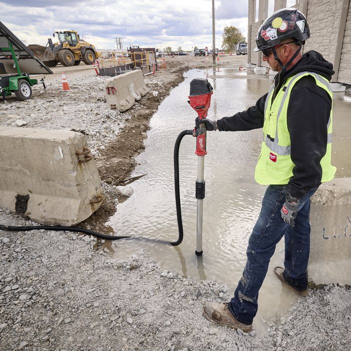 The M18™ Stick Water Pump delivers superior filtration for uninterrupted pumping in catch basins, water meter boxes, trenches, sump pump pits, and more. Featuring a 121 cm submersible aluminium barrel, this transfer pump provides the extension needed to reach water at the bottom of trenches and hard to reach areas. Equipped with HydroPass filter technology, the 360° filter maximises flow in heavy debris, minimising downtime caused by clogging. Powered by the M18™ battery platform, this water pump eliminates repetitive manual pumping and improves control, requiring only one hand to pump, freeing the other to control the outflow. With a 5 metre max head height and an adaptable 32mm threaded outlet that allows you to connect to a standard 18 mm garden hose with the included Y adapter this pump delivers the power to push water farther - out of pits and basins, over walls, and to the ideal deposit location. Compatible with all of our M18™ REDLITHIUM Batteries this pump keeps you productive, effortlessly pumping up to 94 Litres per minute and 3785 Litres on a single charge when using a M18™ REDLITHIIUM™ FORGEtm 12.0Ah battery pack