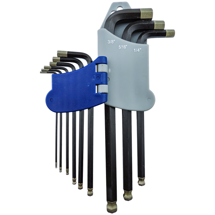 Ball end design allows for use at up to a 25° angle, ideal for hard-to-reach spaces. Available in either Imperial or Metric sizing, this 9-piece set covers all the essentials for professional use or for those that demand the best.
