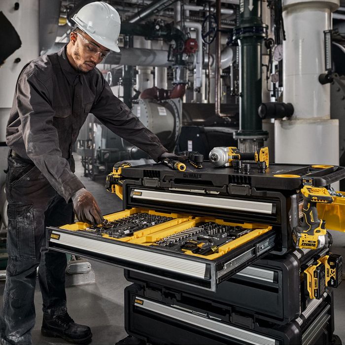 - Customizable TOUGHSYSTEM® 2.0 Storage Solution - Connect and stack DEWALT® TOUGHSYSTEM® 2.0 modules from the top or bottom using patented auto-connect front latches (each sold separately).