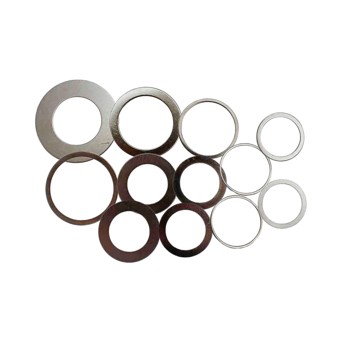 The ToolShed 12 Piece Saw Blade Bush Set offers a versatile solution for adapting saw blades to fit a wide range of machines. Featuring a universal fit compatible with all saw blade brands, this set includes a selection of the most commonly used bush sizes. Each bush is nickel-plated for enhanced rust resistance and long-lasting durability. To ensure proper fitment, match the bush's outer diameter to your blade's bore and the inner diameter to your saw's arbor.
