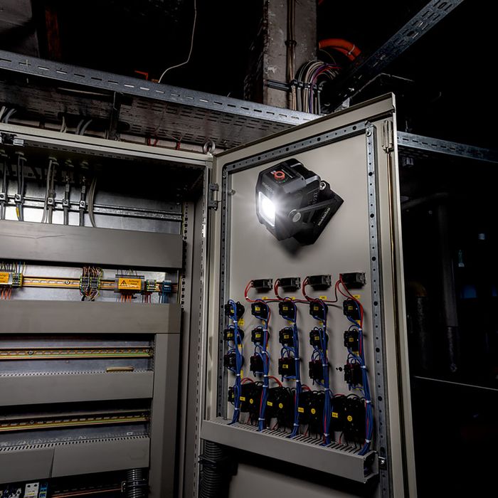ompact cordless site light with COB-LED for a targeted, true colour illumination, ideal in tight spaces