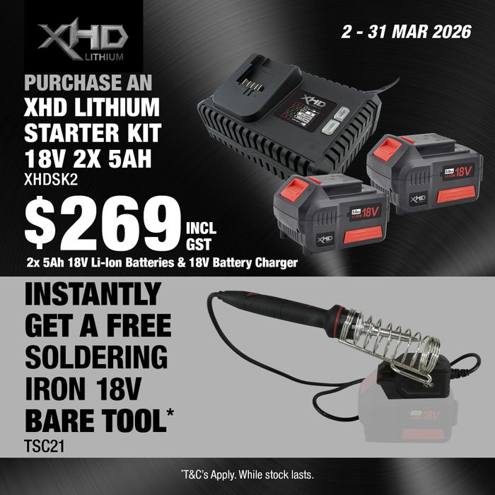 - XHD Lithium Starter Kit 18V 2x 5Ah with Soldering Iron 18V