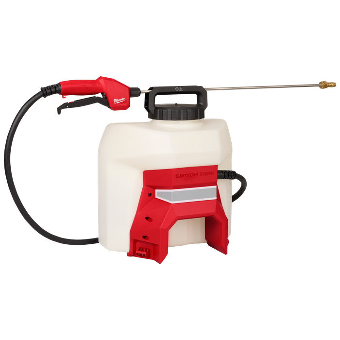 The SWITCH TANK™ 15 Litre Sprayer Tank Assembly is an interchangeable tank, powered by the M18™ SWITCH TANK™ Powered Base (not included). The Sprayer Tank Assembly includes the pump, hose, and wand. The design allows users to add on tank assemblies for different chemicals and applications, eliminating cross-chemical