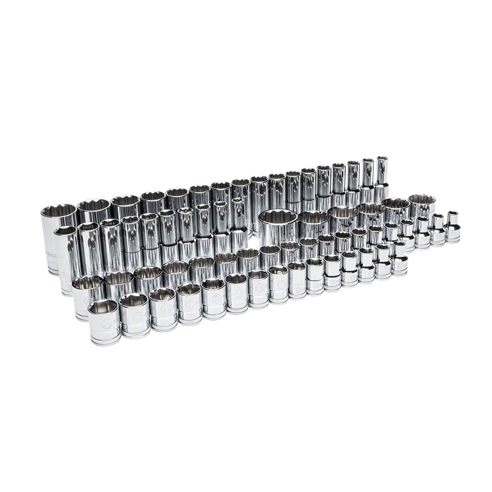 - Set includes 6 and 12 point sockets in standard and deep