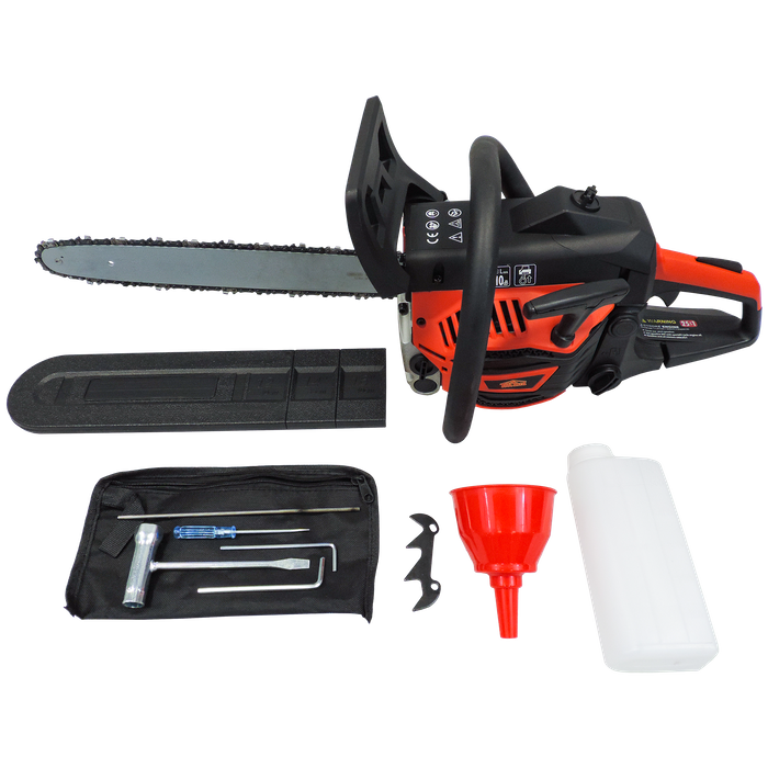 Weighing just 4.6kg without bar and chain, this lightweight chainsaw is easy to handle without sacrificing power. It also comes with practical accessories, including a chainsaw file, fuel mixing bottle, and bumper spikes, so you're ready to start cutting straight away.