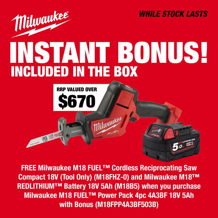 - Milwaukee M18 FUEL Power Pack 4pc 4A3BF 18V 5Ah with Bonus