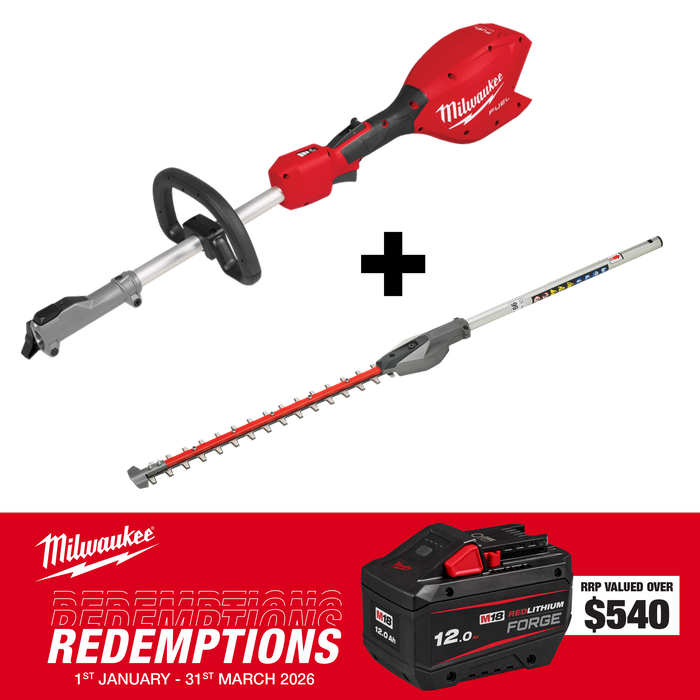 Milwaukee M18 FUEL QUIK-LOK Power Head 18V -Bare Tool + Short handle Hedge Trimmer Attachment