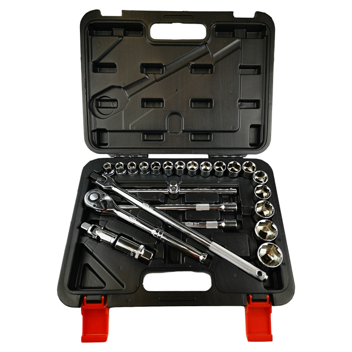 This is a great socket set for those bigger jobs around the home or workshop. The 1/2" Dr sockets range from 10mm to 32mm. This set also comes with a range of other accessories.