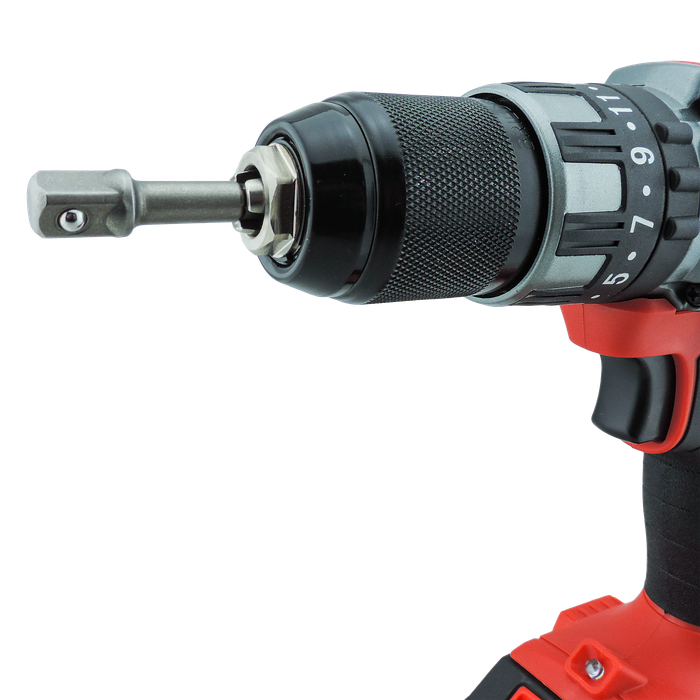 The driver head is a standard 1/4 inch (6.3mm) drive and will click straight into your impact driver or easily connect to your drill chuck.