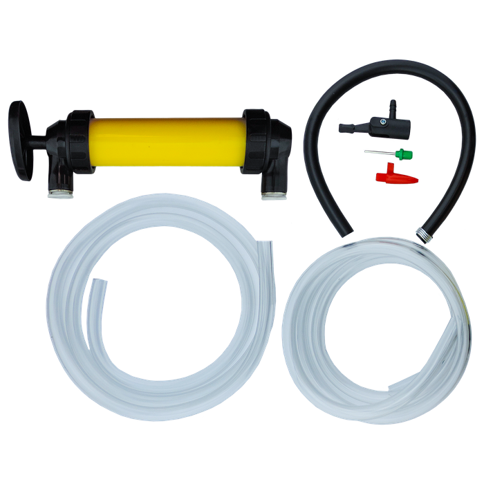 This multi-purpose transfer and air pump kit includes two 1300mm clear hoses for fluid transfer, a 400mm black air pressure hose with a snap-shut valve, a Schrader-style air chuck, inflator nozzle, and 12mm slip-fit outlet and intake nipples. Compact, durable, and easy to use, the GI TOOLS Transfer Pump is the perfect tool for DIY vehicle maintenance, marine applications, and general workshop tasks.