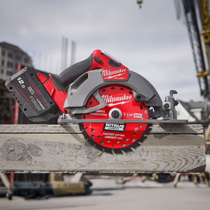 The NITRUS™ Carbide Framing & Demolition Circular Saw Blade offers the Fastest Cutting and Longest Life in Framing and Demolition Applications. The NITRUS™ Carbide performance provides the ability to take this blade from aggressive demolition applications back to clean wood cutting, which reduces blade changes and maximizes productivity. With the sharpest, longestlasting - welded carbide teeth, It delivers unmatched durability. Equipped with cool cutting diamond vents to reduce heat buildup