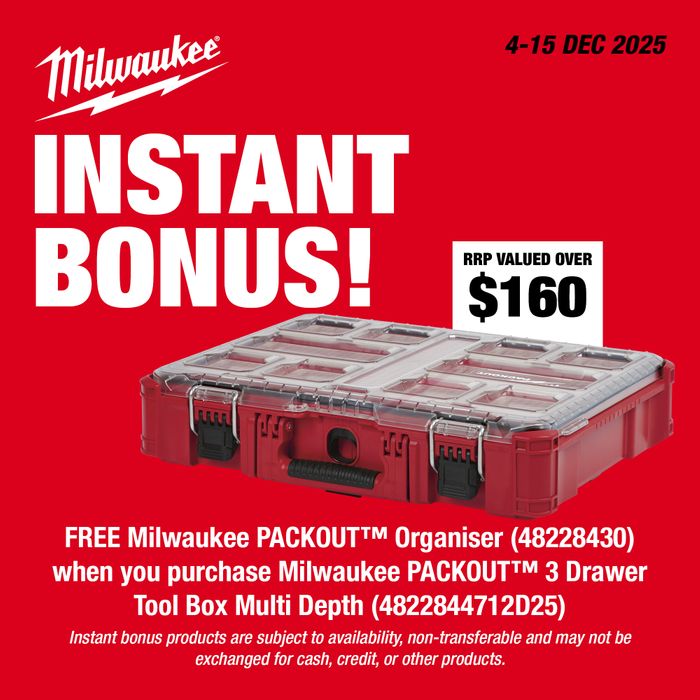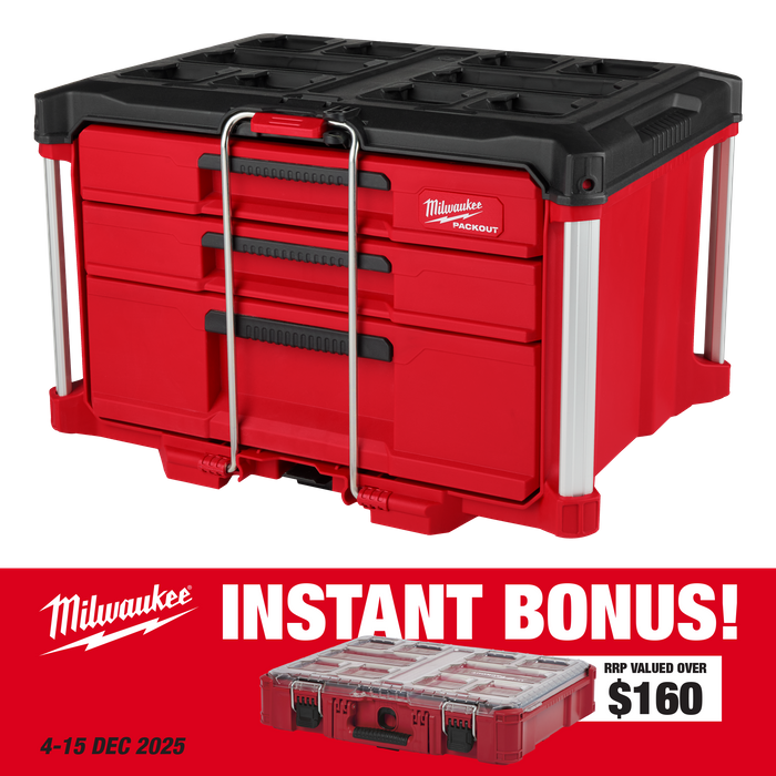 - Milwaukee PACKOUT 3 Drawer Tool Box Multi Depth with BONUS