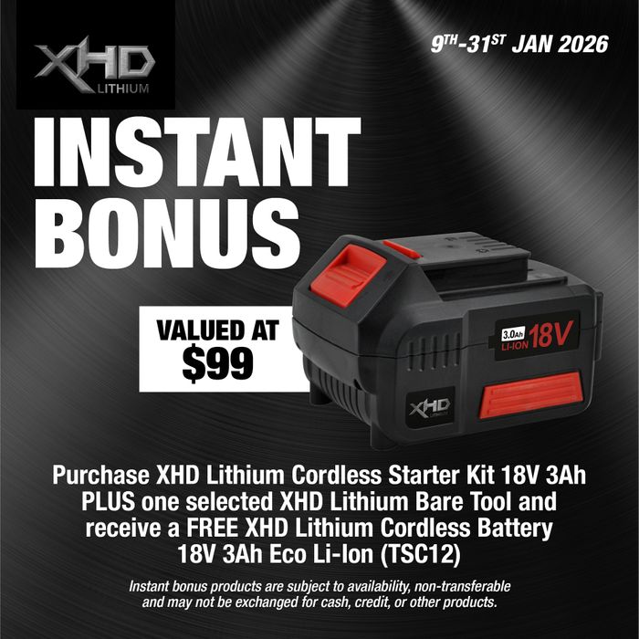 XHD Lithium Cordless Battery 18V 3Ah features a robust, compact battery design with high demand output to drive the powerful XHD cordless range.