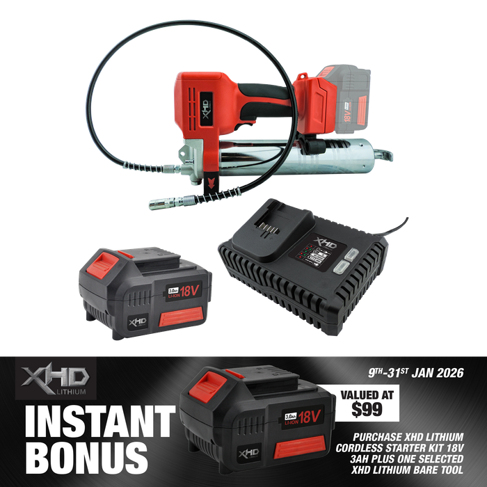- XHD Lithium Starter Kit 18V 3Ah with Grease Gun 18V