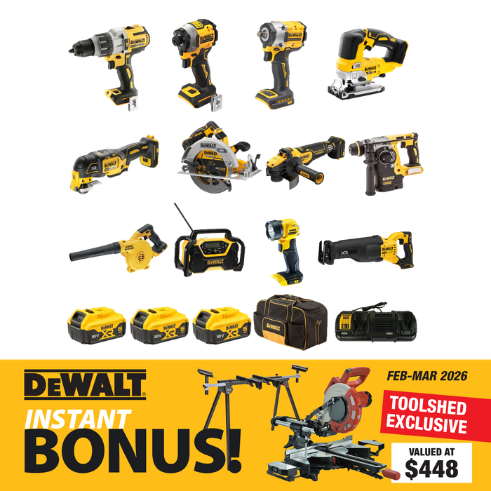 Many DeWalt products have been factory customized to New Zealand specifications. Servicing and parts are available at any of our ToolShed stores nationwide. Buy from The ToolShed with confidence.