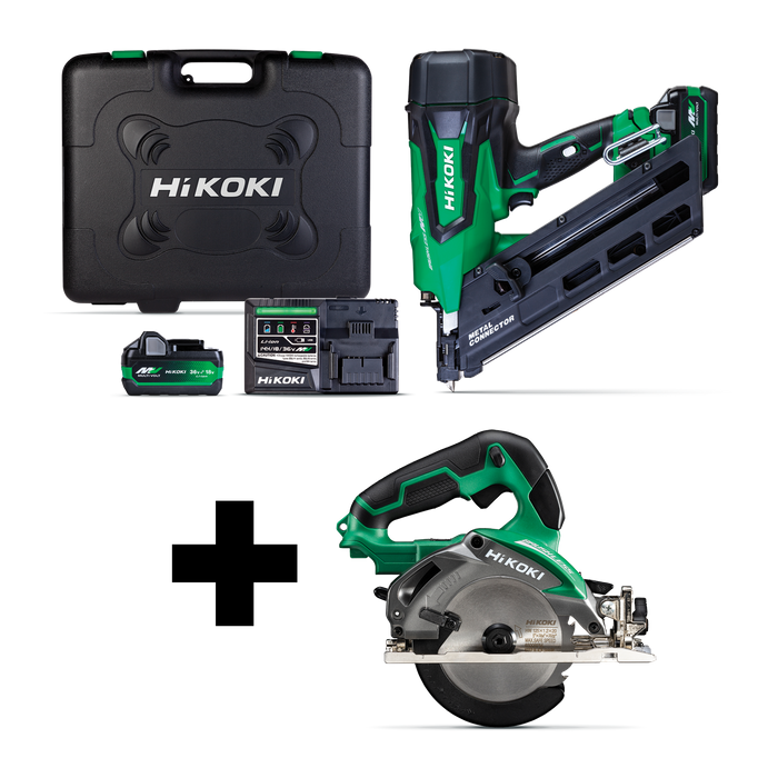 - HiKOKI Cordless Brushless Metal Connector Nailer & 125mm Circ Saw Kit