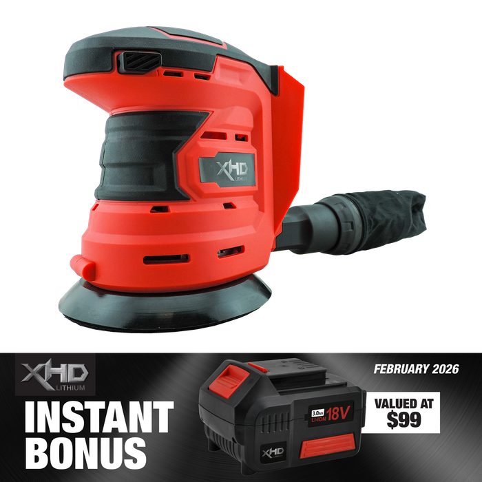 - XHD Lithium Orbital Sander 125mm with 3Ah Battery 18V