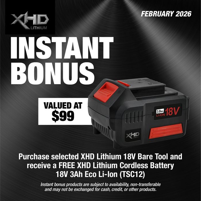 XHD Lithium Cordless Battery 18V 3Ah features a robust, compact battery design with high demand output to drive the powerful XHD cordless range.