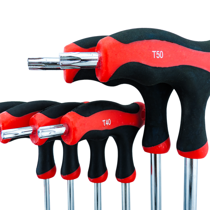 This 10-piece ToolShed Torx T-Handle Key Set is designed to give you better grip, more leverage, and reliable performance in the workshop or on-site. The T-handle design delivers increased leverage for stubborn fasteners, while the ergonomic rubberised grips provide a secure, non-slip hold for long-lasting comfort.