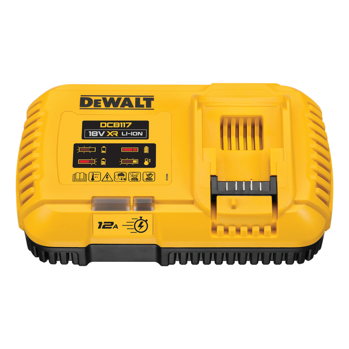- 12 Amp rating charges a DCB547 9Ah FLEXVOLT® battery to 80% capacity in under 45 minutes