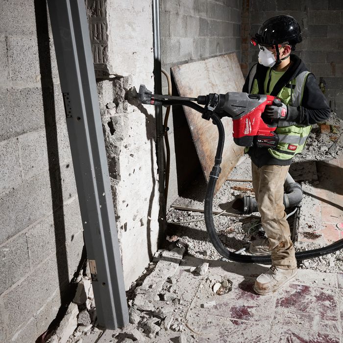 activate the dust extractor directly from the tool for increased efficiency. Additionally, this cordless rotary hammer is
