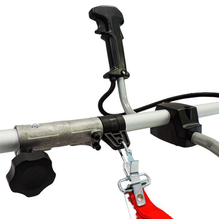 The ergonomic construction of this tool features the brushless motor located on the bottom of the cutting head which will help reduce vibration on the handles and give overall stability to the tool, balancing out the weight of the XHD batteries on the top end. The bullhorn style handles offer ultimate control of the tool, utilising both hands to easily swing and hack away at tough brush. The shoulder strap means you don't have to worry about the weight of the brushcutter, offering better support and less user fatigue with extended use. The handle positioning and also the shoulder strap locations are fully adjustable along the shaft so you are able to sit them where is personally the most comfortable.