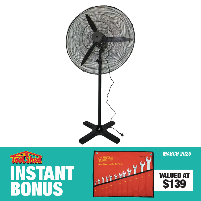 - ToolShed Pedestal Fan 750mm with Gear Spanner Set 6-24mm 12pc