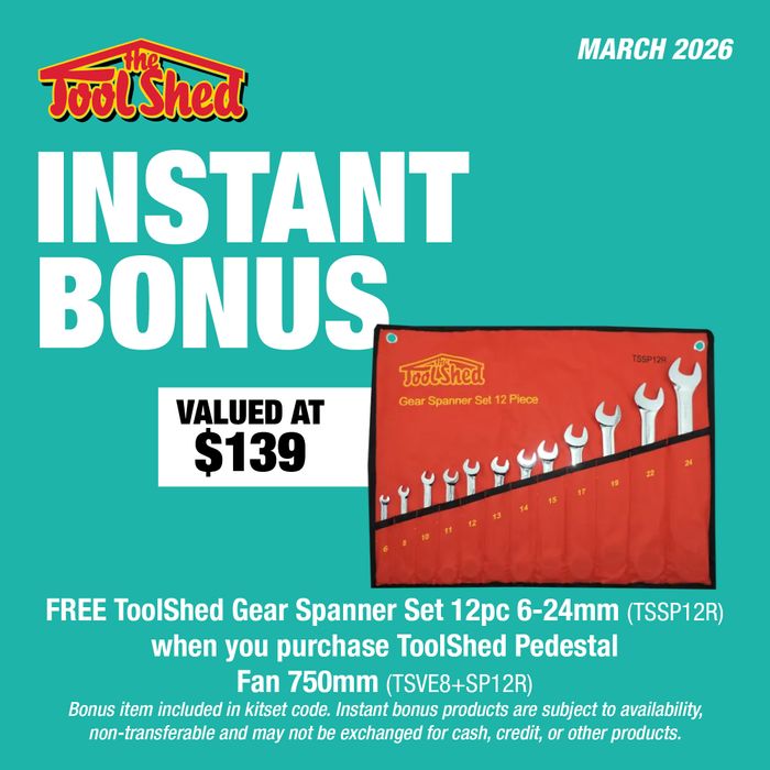 Stock Levels for ToolShed Pedestal Fan 750mm with Gear Spanner Set 6-24mm 12pc