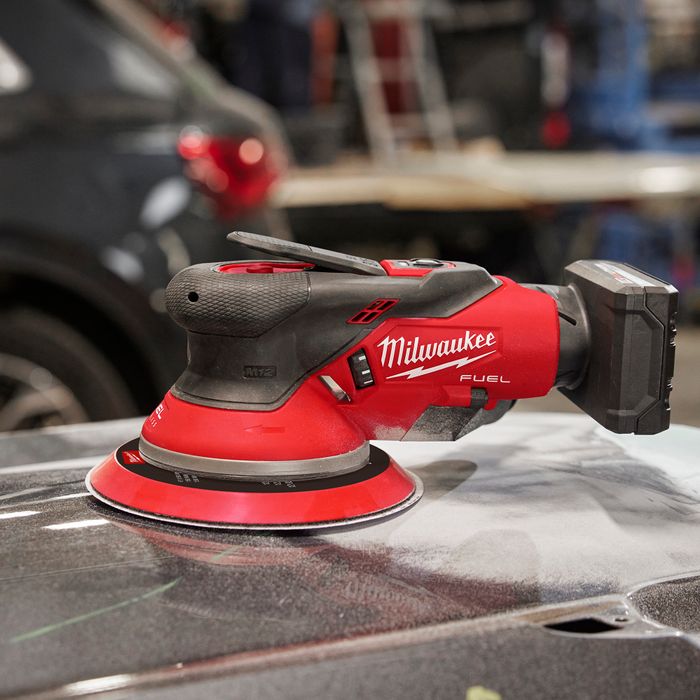 Designed for the professional Body Technician, our M12 FUEL™ 15mm Random Orbital Sander (5mm) delivers the power to confidently sand body filler, ultimate control when shaping body panels, and delivering maximum runtime.Our POWERSTATE™ Brushless Motor and REDLINK PLUS™ intelligence give users the confidence to remove body filler while maintaining material removal under load. The 150mm Random Orbit has an aggressive throw of 5mm to deliver efficient body filler removal. The innovative ergonomic shape, speed dial, and variable speed trigger provide ultimate control of the 3,200-12,000 RPM speed range delivering a confident sanding experience. The optimized battery isolation system secures pack connection, controls vibration transmitted to the battery, and ensures fitment. The sander is equipped with a new-to-theworld, tool-free backing pad change mechanism that improves user productivity. When paired with the included Milwaukee® Tool 150mm Backing Pad - Firm, the pad and tool combination is optimized for vibrations and the preferred removal rate of body filler.