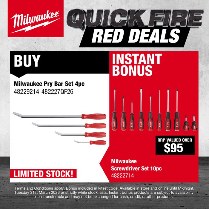 Stock Levels for Milwaukee Pry Bar Set 4pc with BONUS Screwdriver Set 10pc