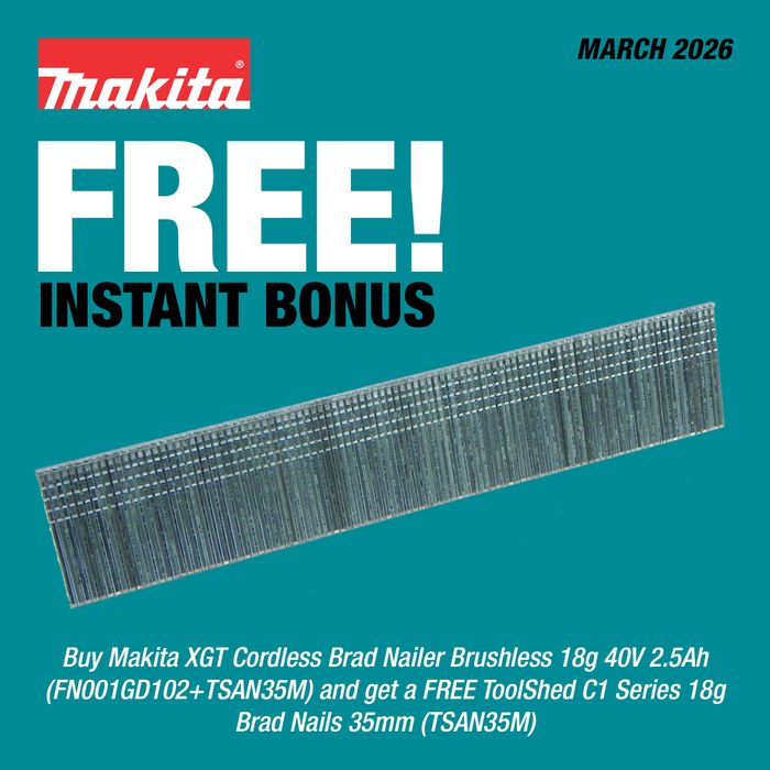 - Makita XGT Cordless Brad Nailer 18g 40V 2.5Ah with Bonus ToolShed 35mm Nails