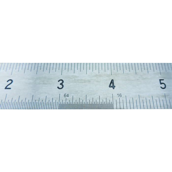- Metric graduations are at 1mm intervals, and Imperial graduations at 1/64in, 1/32in, and 1/16in intervals.