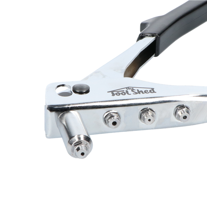 With comfortable soft grip handles, the rivet heads screw directly into the body, and the spare tips screw into the handle for safe keeping.